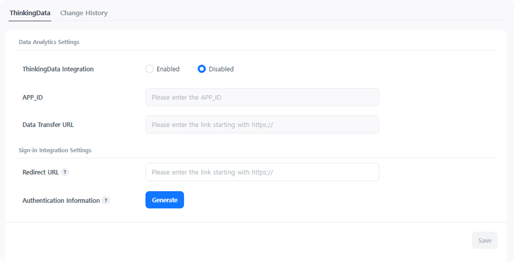 - APP_ID: Enter the project-level APP_ID issued by ThinkingData.