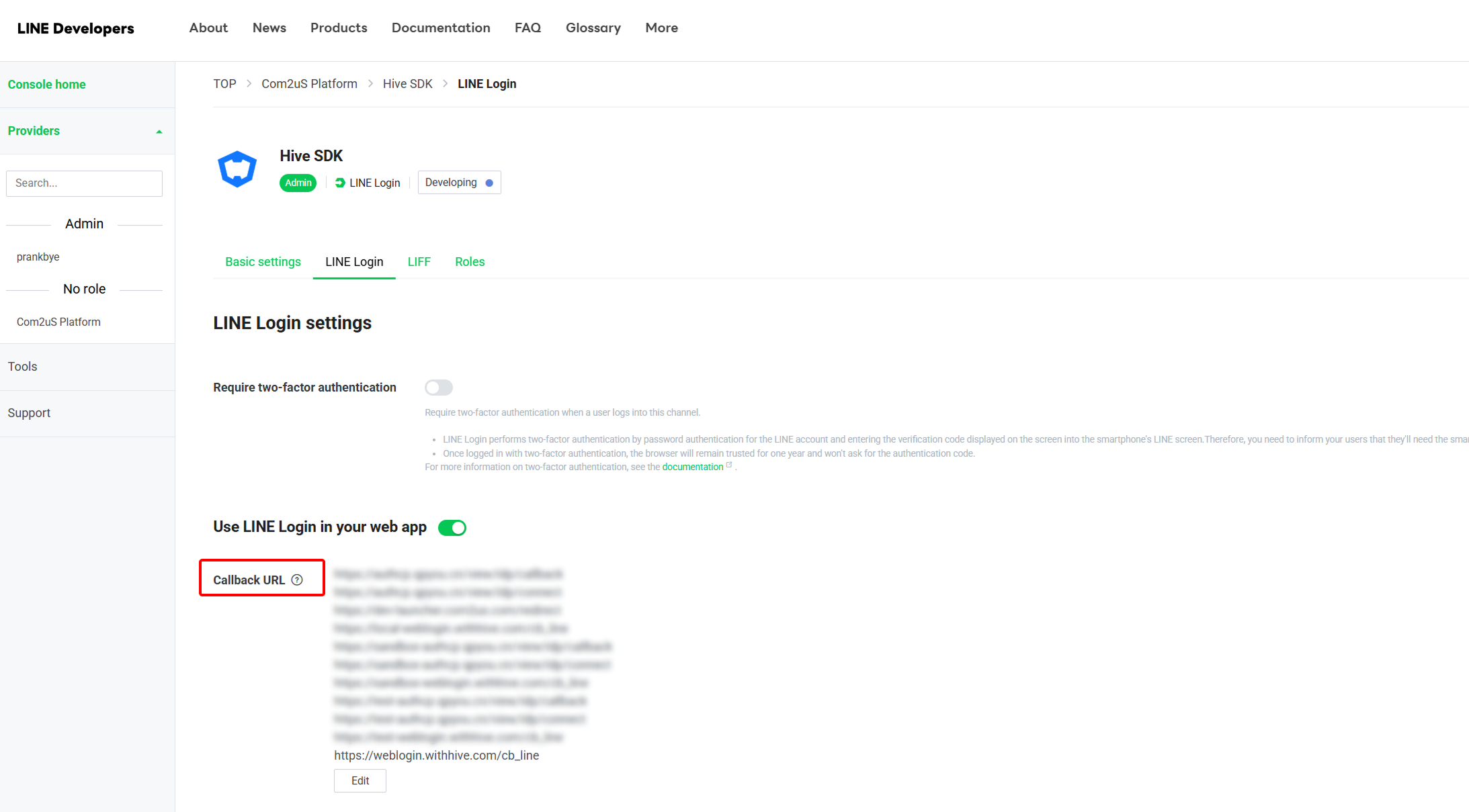 - On the LINE Sign-in tab, enable LINE Sign-in.