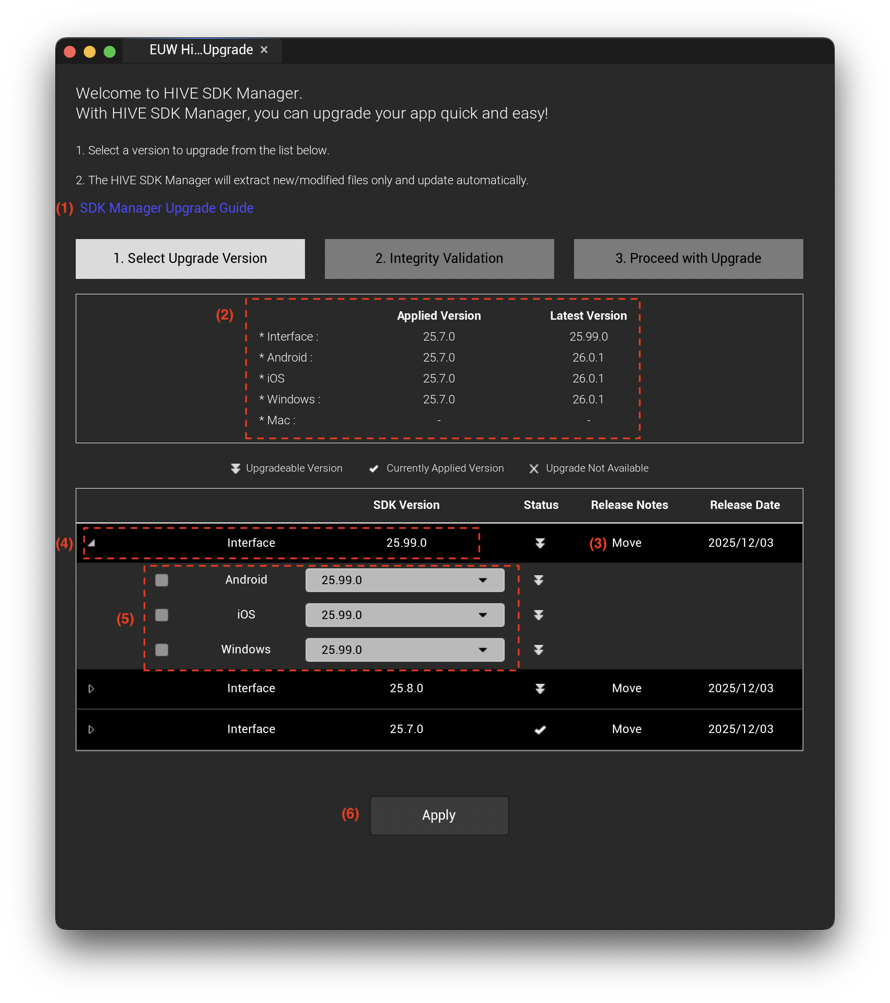 Upgrade Hive SDK with SDK Manager¶