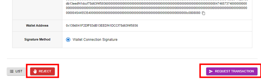 - Request Type : You can see which signature request is being sent in order to use whatever blockchain function.