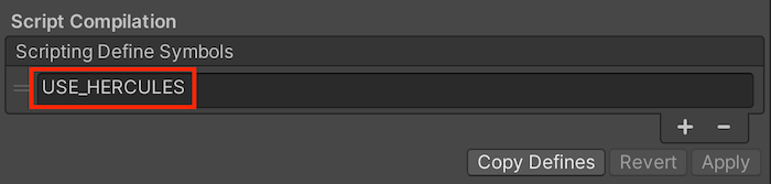 UnityのプリプロセッサフラグにUSE_HERCULESを追加します。