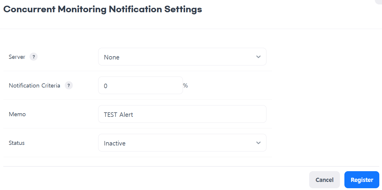 - Example) If the notification criteria are set to 20% and the previous concurrent users were 10,000, a notification will occur if the current concurrent users are 8,000 or less.