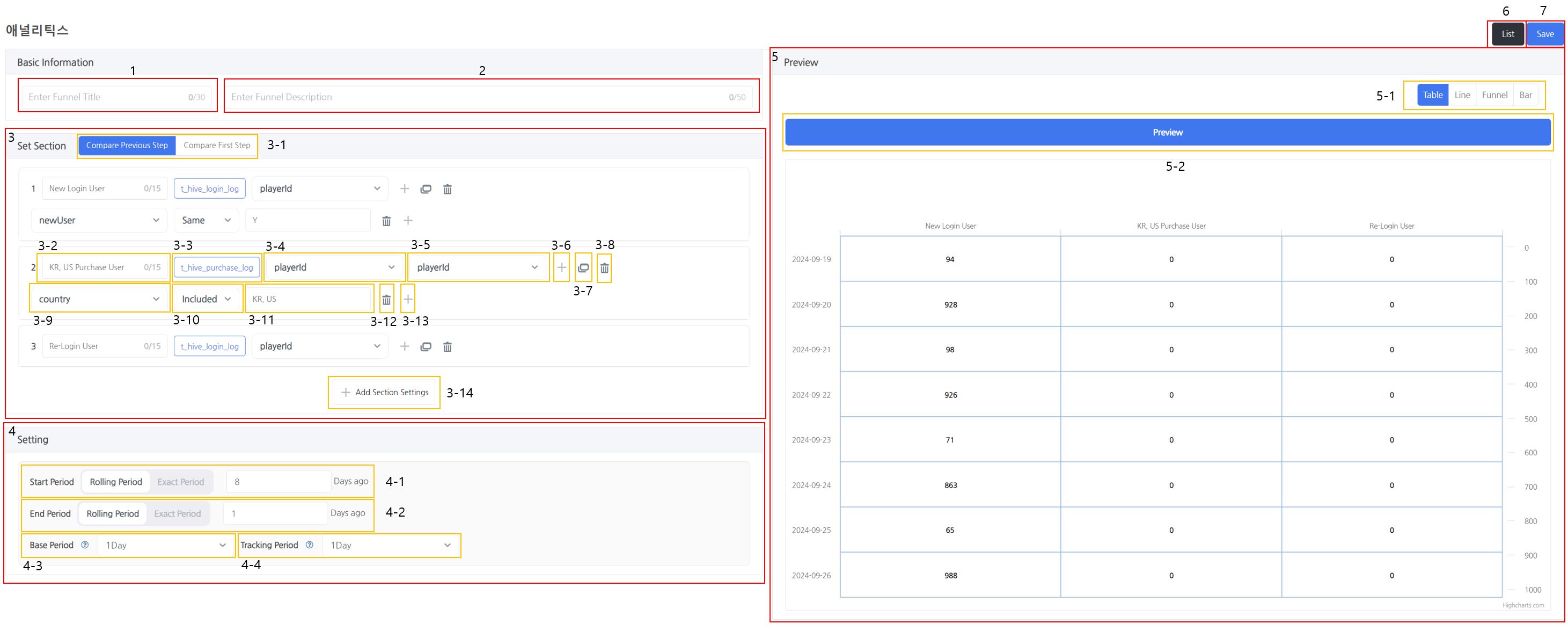 1. Dynamic Period: Sets the end period by converting the specified number of days prior to the current date when viewing the funnel.