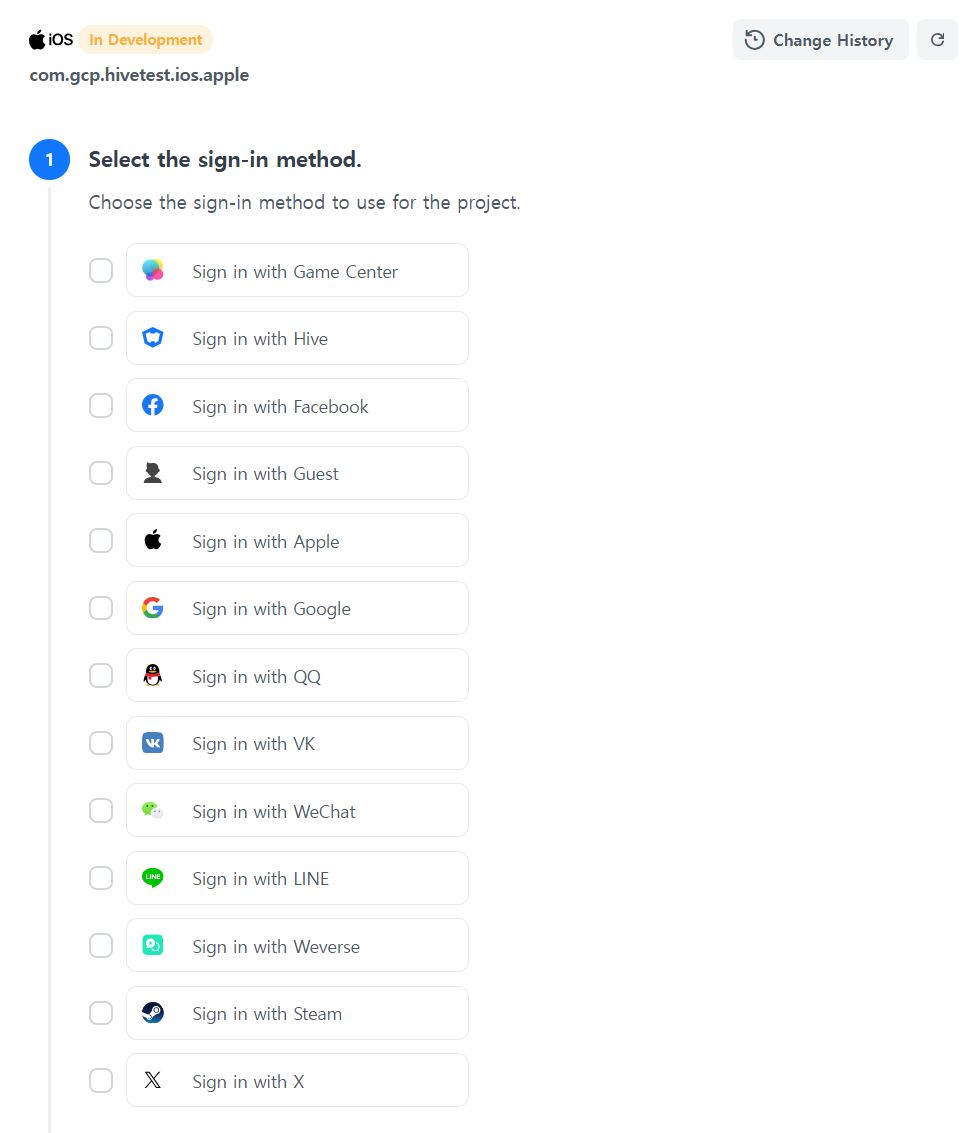 - Supported sign-in types are automatically displayed based on the OS registered with the App ID in the App Center. Select the sign-in types you want to activate.