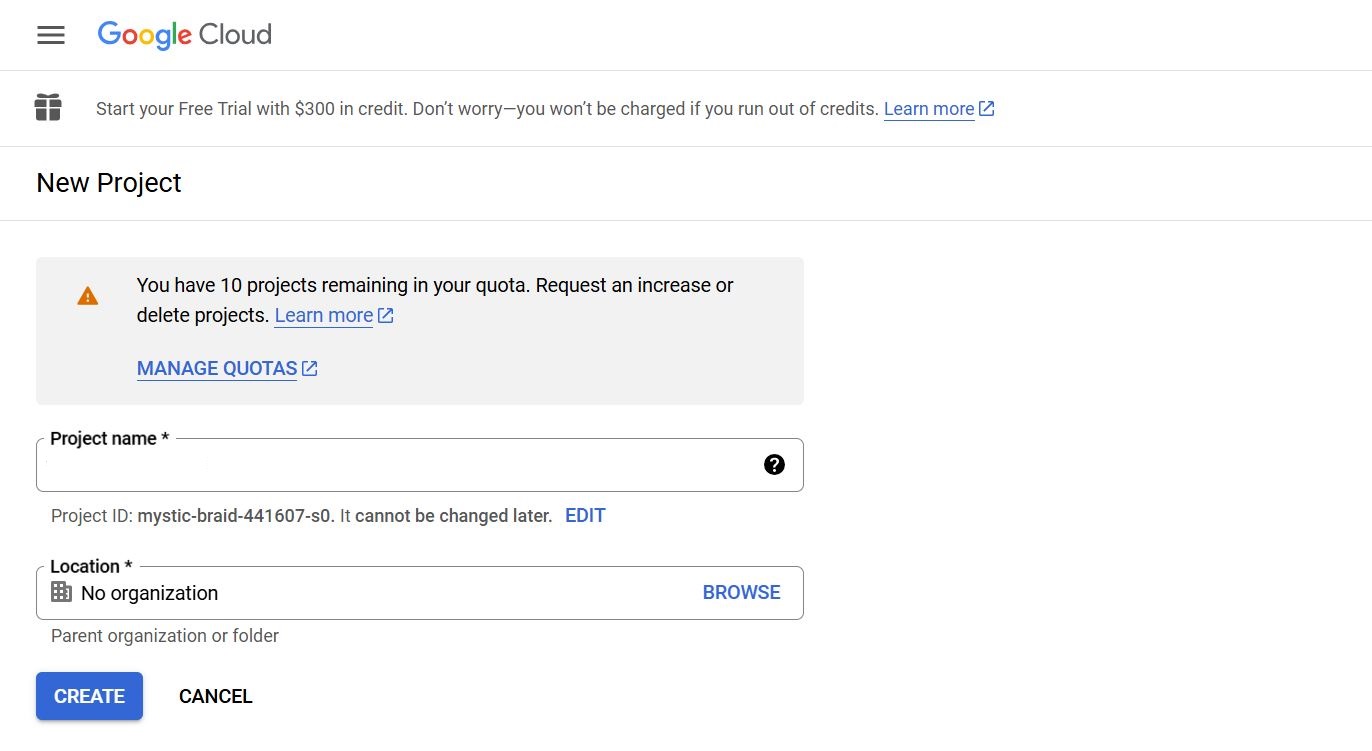 - Click Google Cloud Console to open the Google Cloud Console page in the Create a Google Cloud project pop-up.