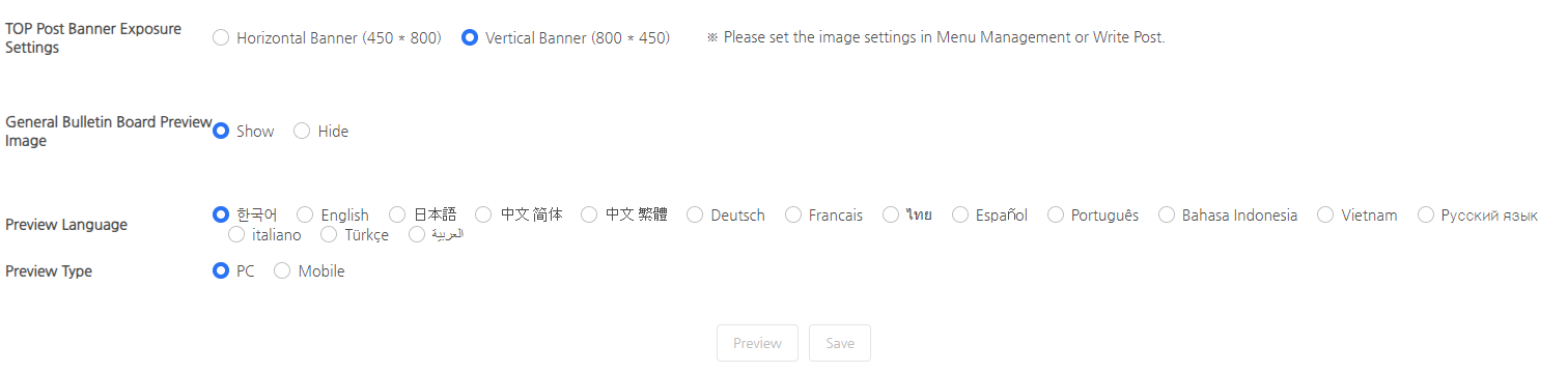 You can preview the community site by language and device (PC/Mo).