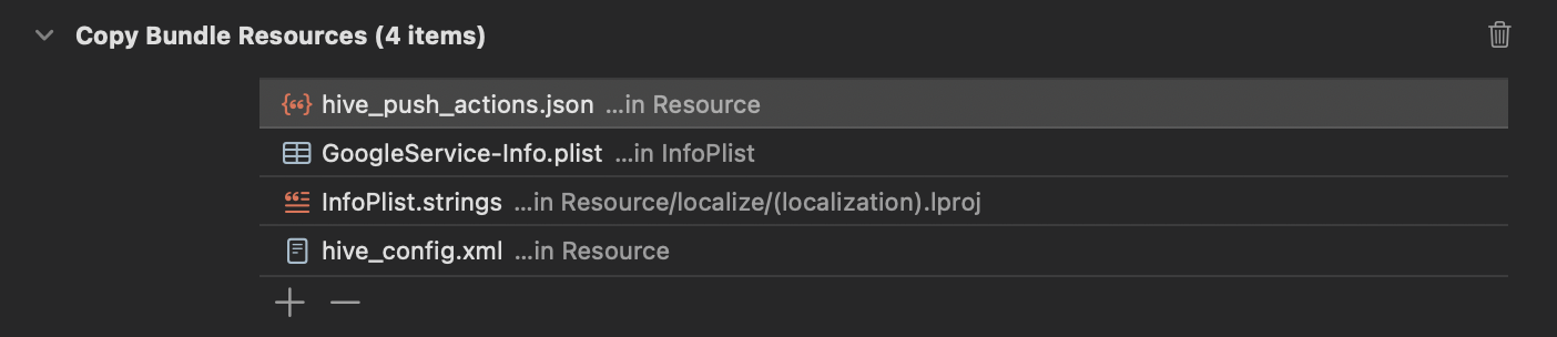 In Unity Editor, the Hive SDK's **PostProcess** feature automatically handles target addition and Info.plist creation. Simply check the option to use push action buttons; no other manual steps are required.