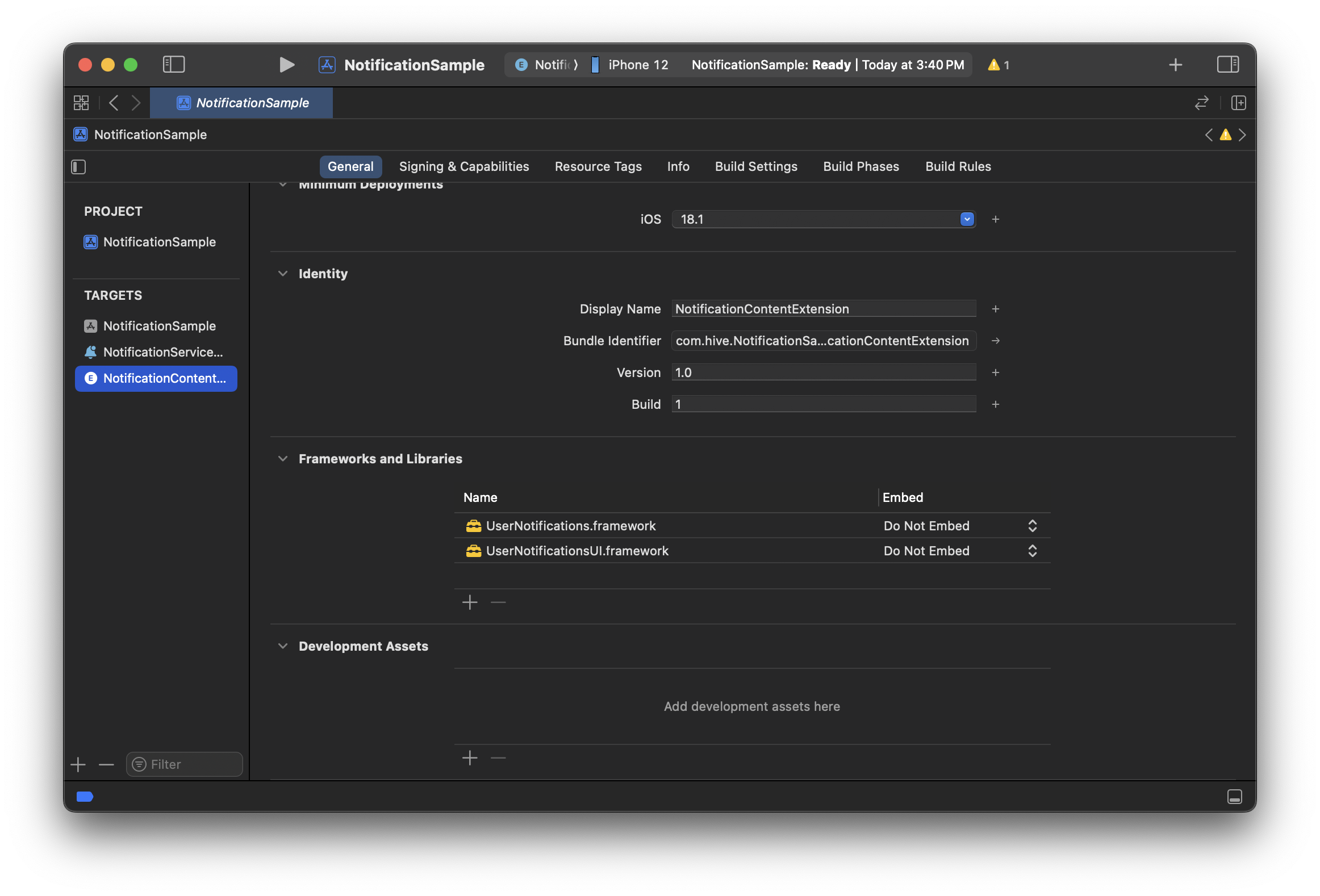 NSExtension/NSExtensionAttributes/UNNotificationExtensionInitialContentSizeRatioto0. - Add the