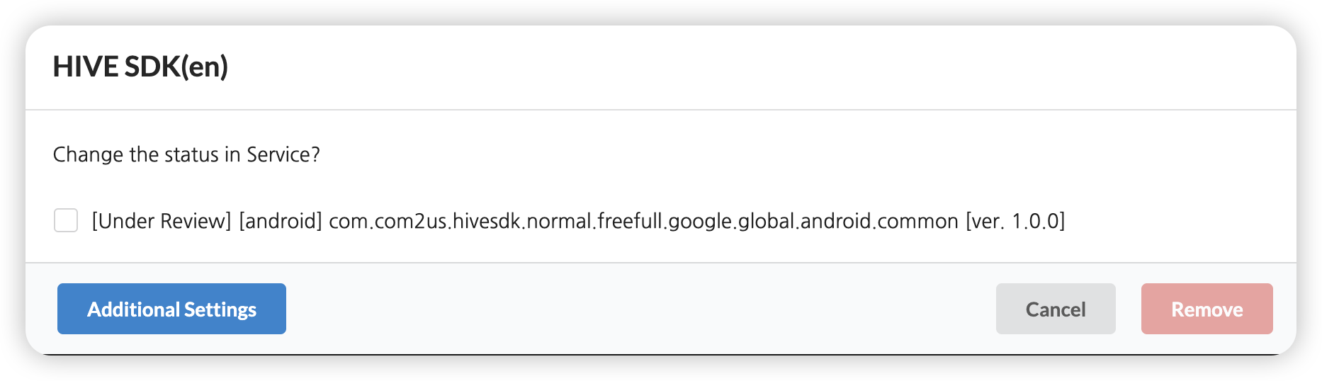 Shows the APPID and version of the app under validation as items. Click Additional Settings.