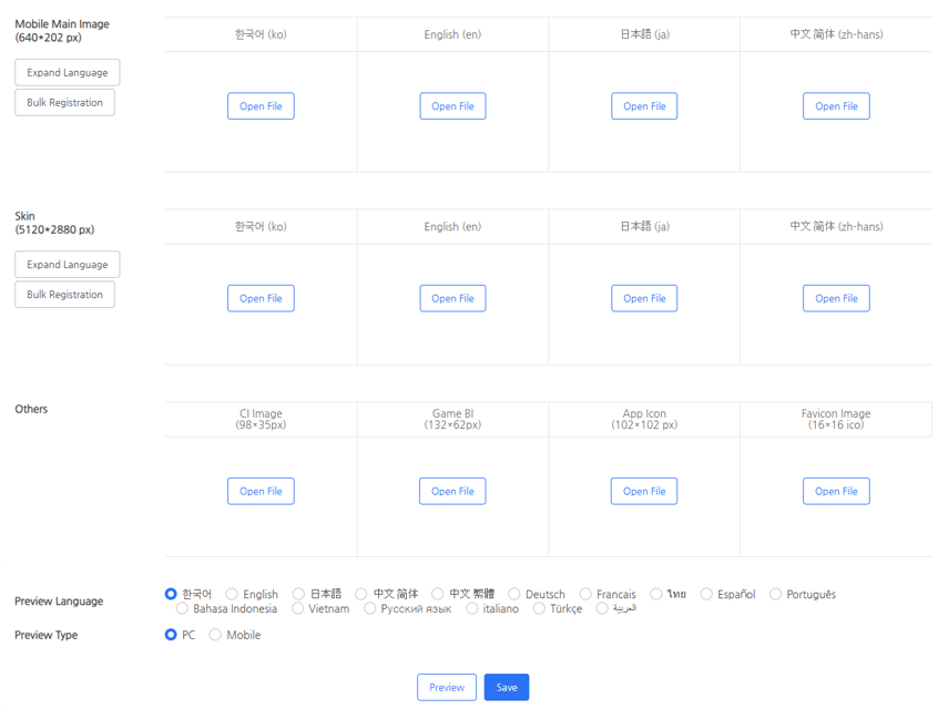 - You can check the image registration status for 16 languages when you click the Expand Language Button.