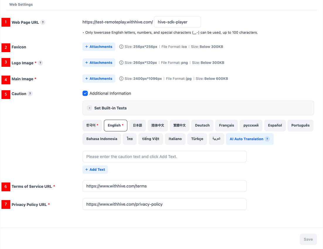 - Add a link to the terms in the footer of the Remote Play web page. Only one URL can be registered, and the linked web page must support multiple languages.