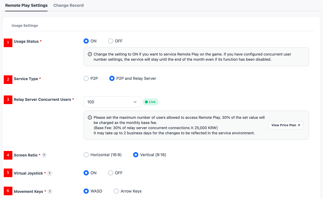 - Even without setting a concurrent user limit, Remote Play is available in a P2P environment.