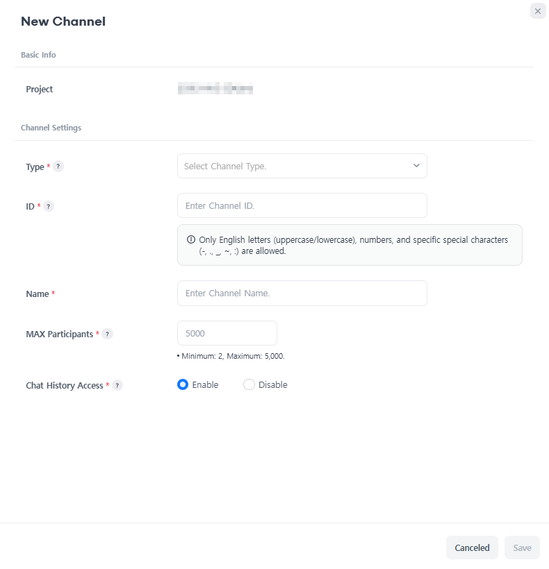 • Max Participants: Set the maximum number of users allowed in the channel.