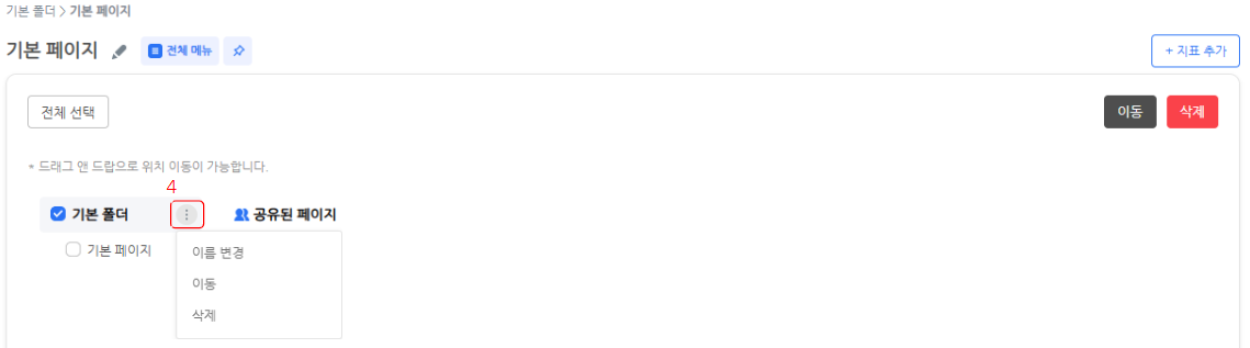 Two default folders, Basic Folder and Shared Page Folder, are provided.