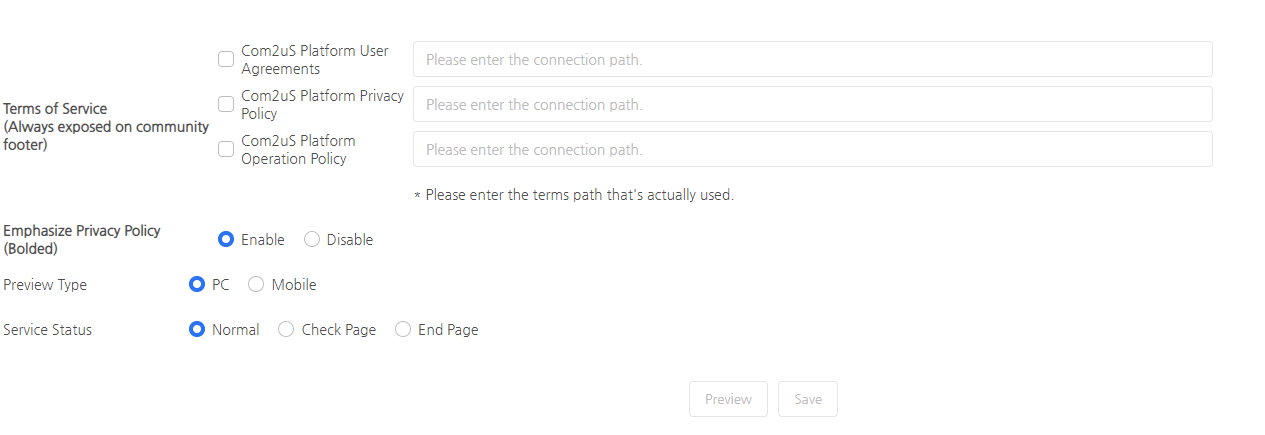 - Set the service company's Terms of Service, Privacy Policy, and Operating Policy.