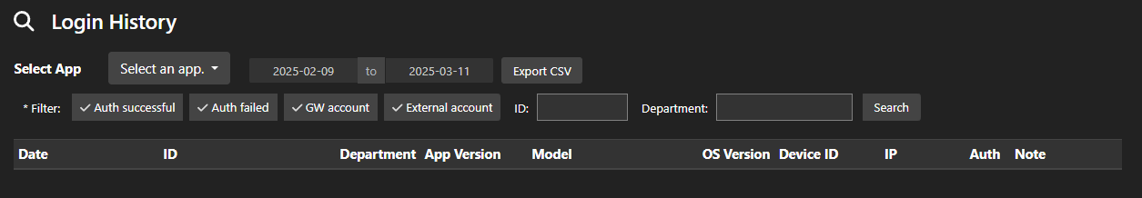- [Login History] You can check the authentication records in the menu.