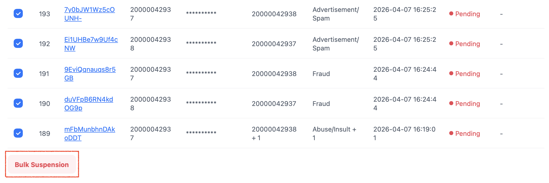 - 通報理由 : 通報理由が複数ある場合、通報理由以外のn件と表示されます。