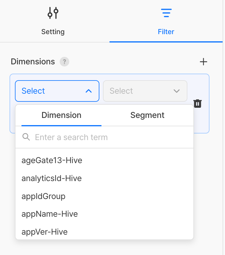 - フィルターはディメンションとセグメントのいずれかを選んで追加でき、追加したフィルターはダッシュボード内の すべてのパネル に一括適用されます。