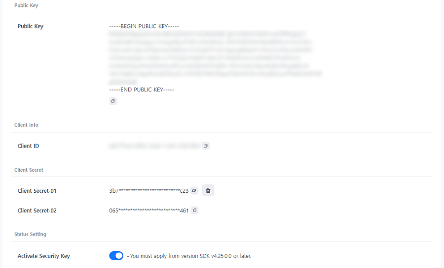 • 認証セキュリティプロトコルの変更により、セキュリティキー設定はSDK v4.25.0.0以降から適用する必要があります。