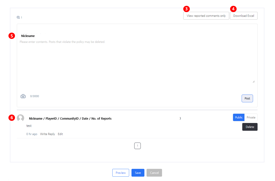 - 管理者は投稿に対してコメントに返信したり、公開/非公開に設定したり、コメントを削除したりできます。コメントが管理者によって書かれた場合は、編集することもできます。