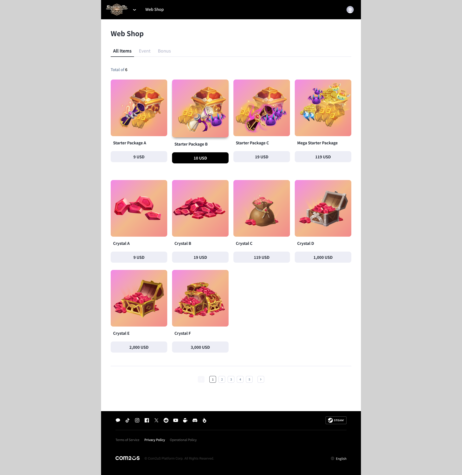 - ゲームサーバー、チャンネル、キャラクターを選択して製品を購入する