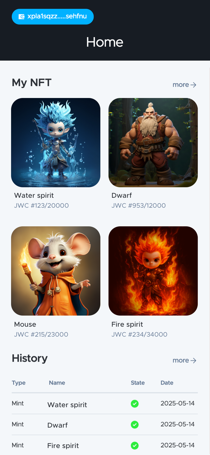 NFTクエリページを開くと、X-PLANETウォレットまたはXLPA Vaultにログインするためのウィンドウが表示されます。ユーザーは、X-PLANETウォレットまたはXLPA Vaultにログインした後、MintまたはBurnを実行するために特定のウォレットアドレスを選択する必要があります。