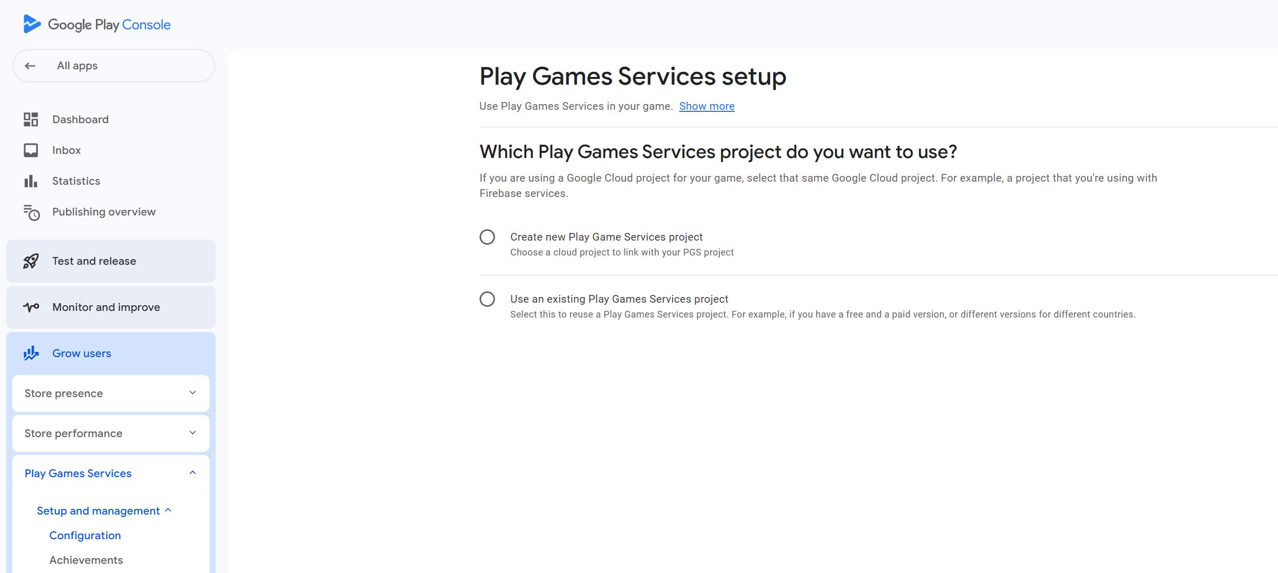Google Play ConsoleのPlay Games Services設定でクラウドプロジェクトを設定する