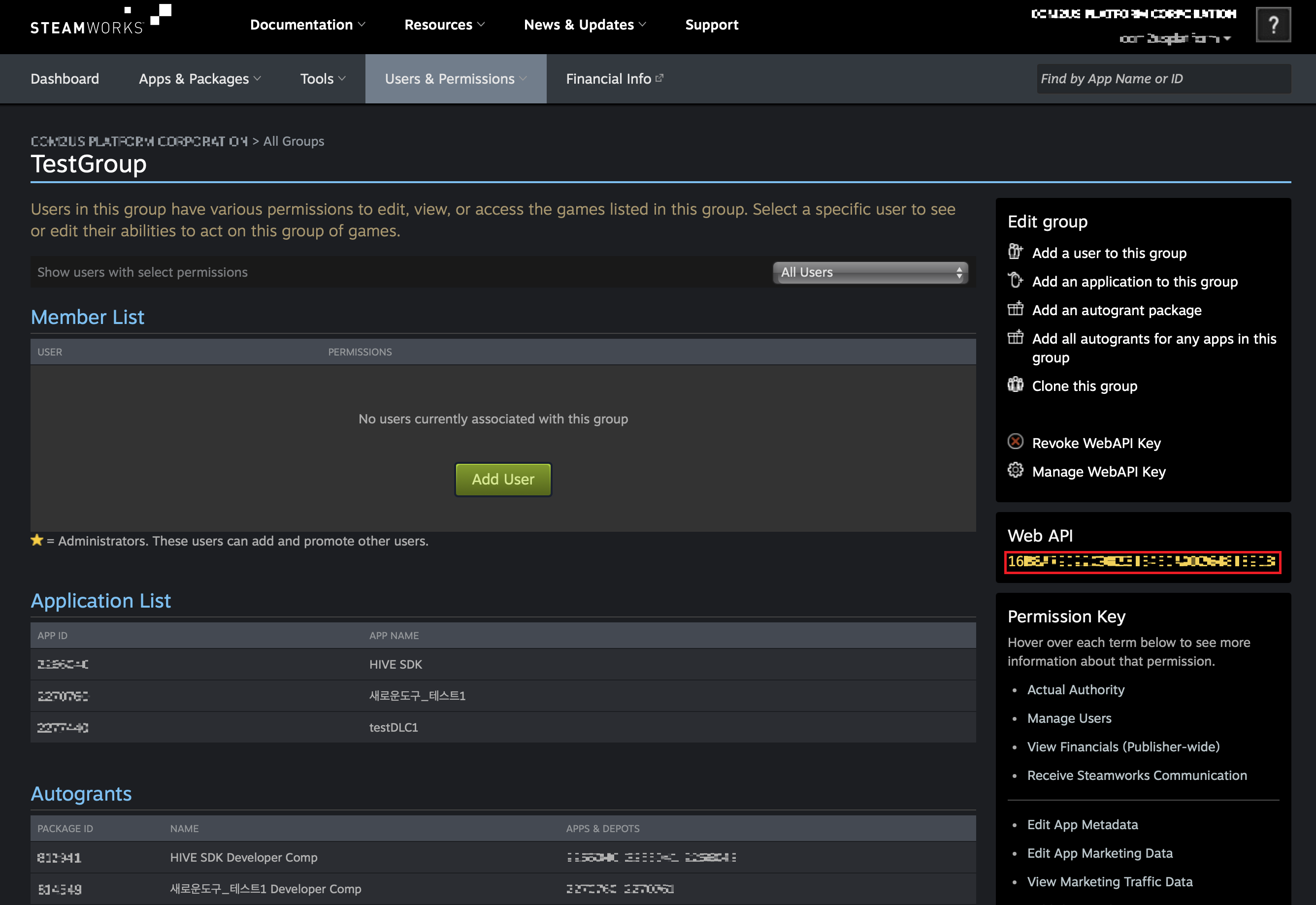 Steamworksパートナーサイトのキー発行と登録プロセス¶
