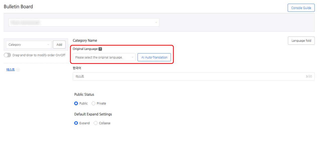 - 例: 韓国語または日本語のボックスにカテゴリを登録すると、韓国語/日本語サイトにカテゴリが作成されます。