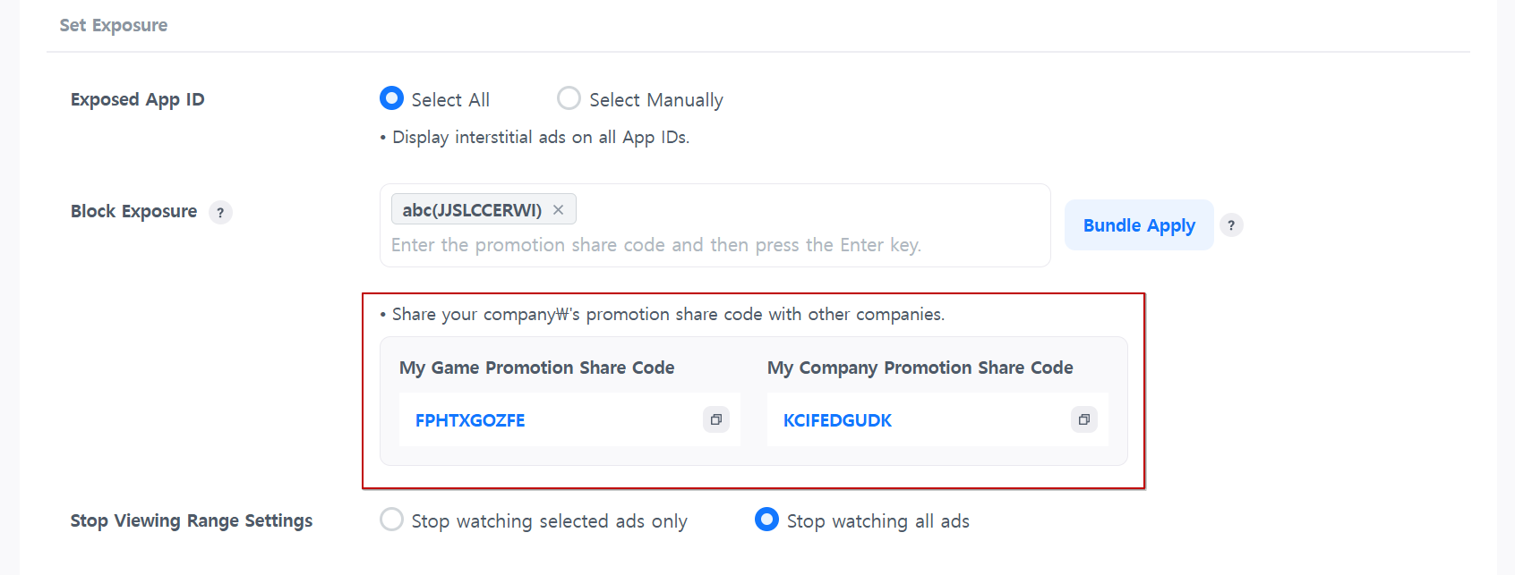 バンドル適用機能を使用して、許可されているすべてのゲームにプロモーション共有コードを適用できます。
