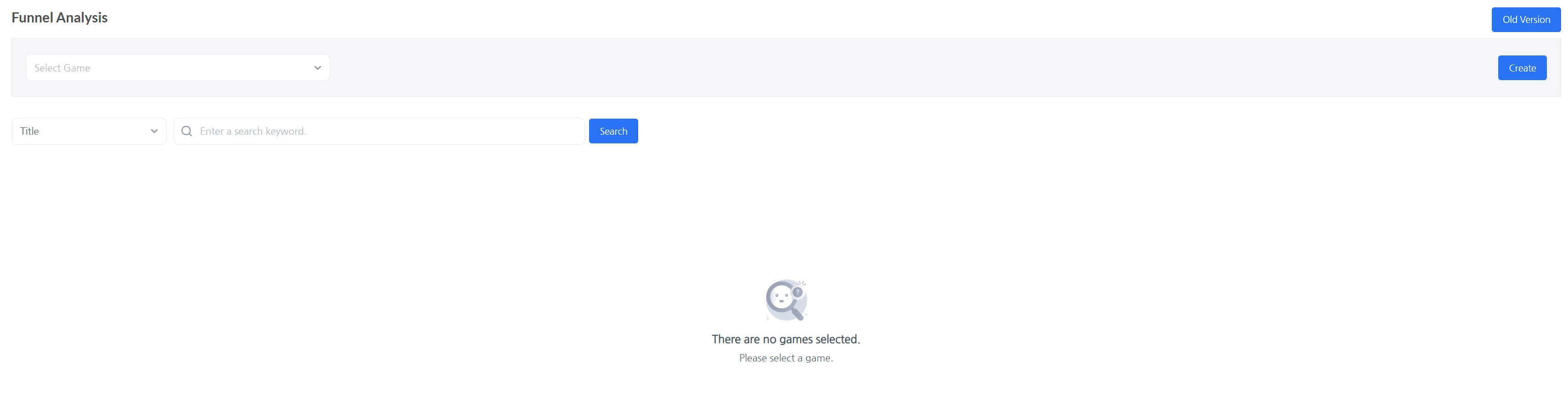 - ファunnelを表示または作成するには、まずゲームを選択する必要があります。ゲームを選択して、そのゲームのファunnelを表示および作成します。