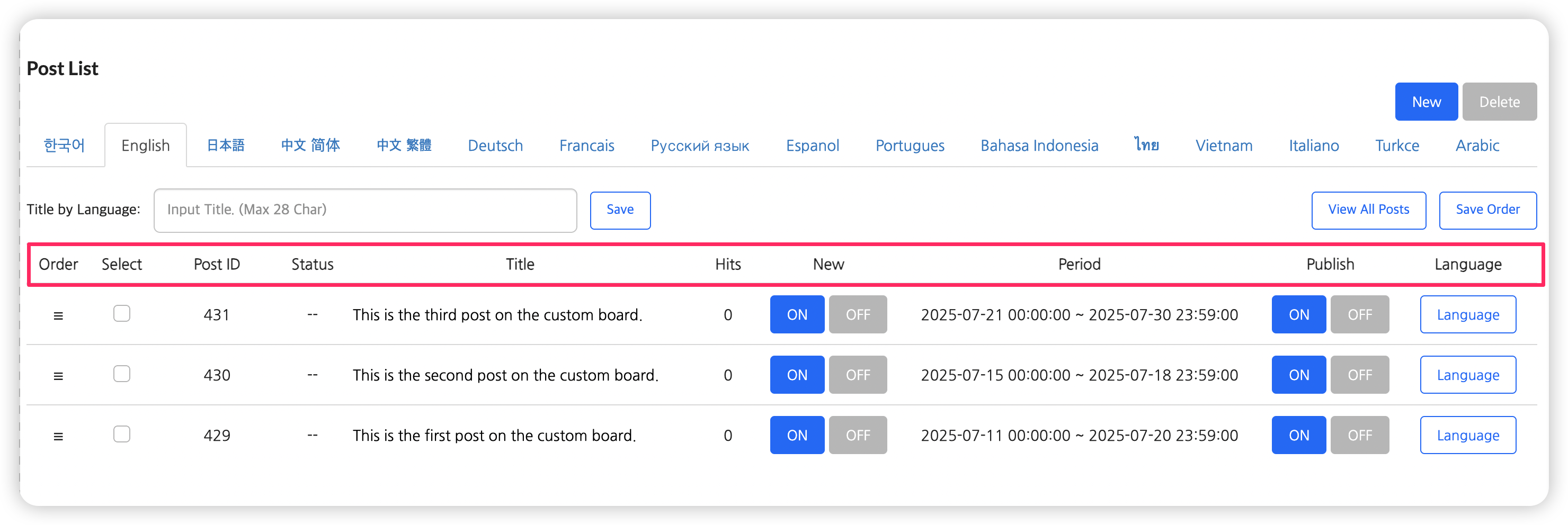 3. ONに設定すると、投稿リストにNewアイコンが表示されます。