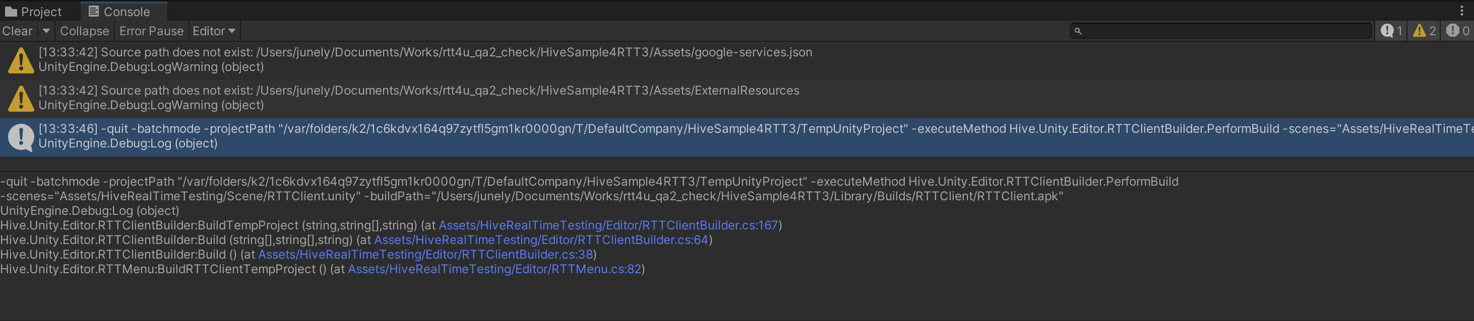 ビルドが失敗した場合は、Unityエディターで対応するエラーメッセージを確認できます。詳細については、上記のパスに作成されたbuildReport.logログファイルを参照してください。