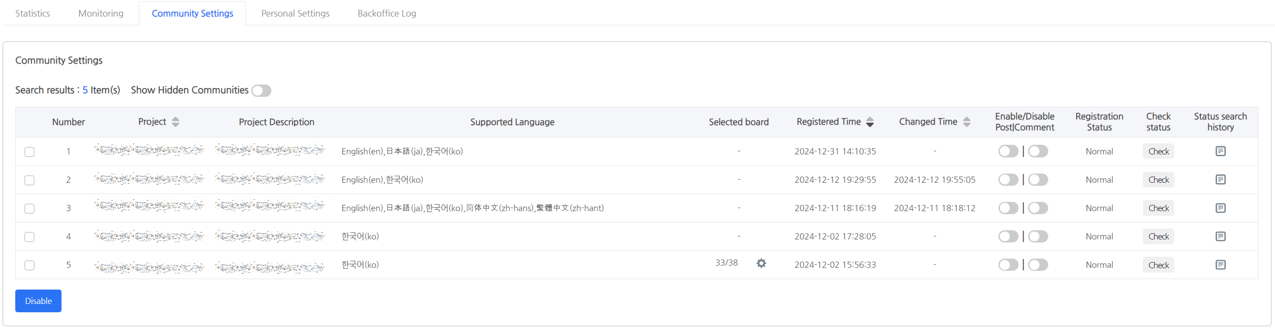 - 登録状況とステータス確認: コミュニティが監視可能かどうかを確認できます。