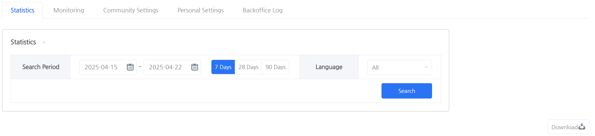 - 検索期間: 7日、28日(4週間)、90日ボタンを使用して検索範囲を設定できます。選択した過去の日数は現在の日付から設定されます。個人設定で検索期間が指定されていない場合、デフォルトの範囲は7日前から今日までです。