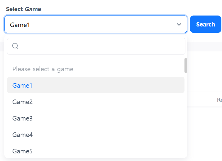- ゲームを選択した後、検索をクリックすると設定されているゲームごとのリストを確認できます。