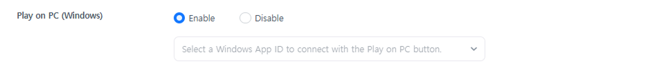- PCゲームのAppIDを「Play on PC」ボタンに接続する必要があります。