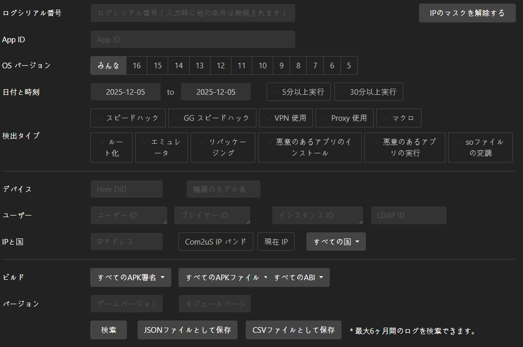 Hive Console → ゲームセキュリティ → ヘラクレス不正行為検知、さまざまな検出統計と検索ログにアクセスできます。