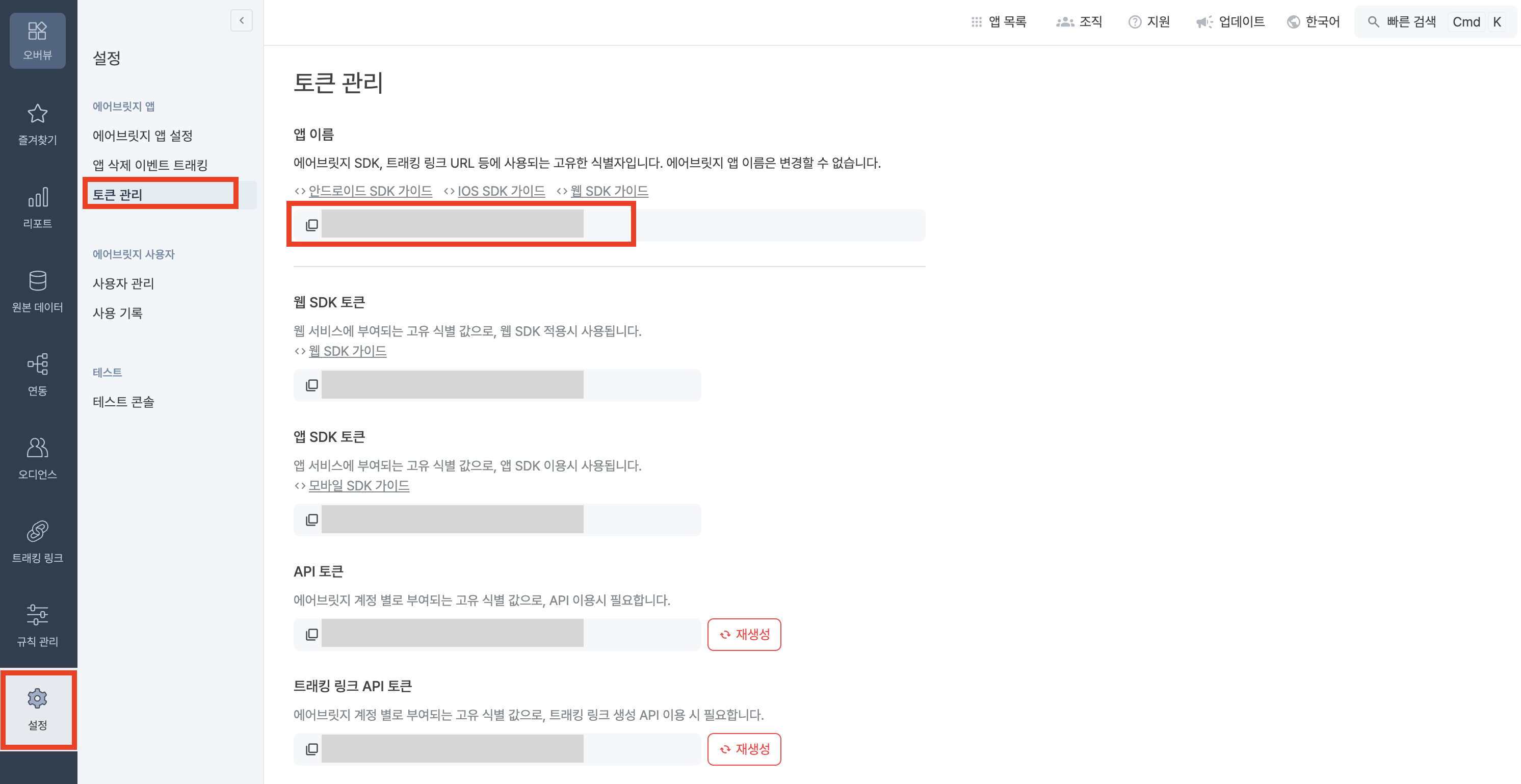 Airbridge 콘솔에서 발급받은 앱 SDK 토큰을 입력합니다.