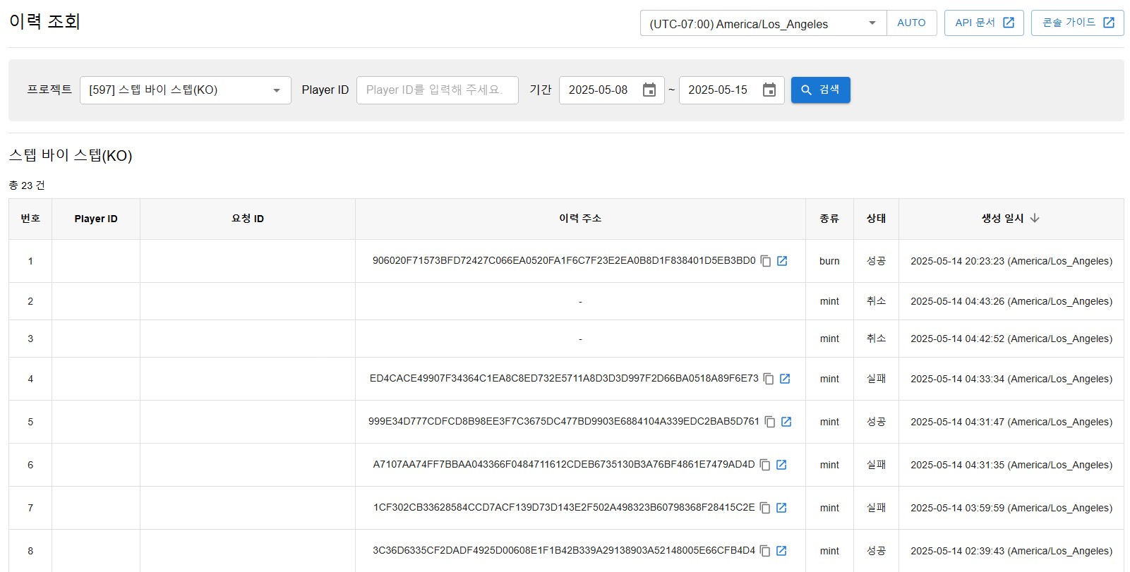 - Player ID : 트랜잭션을 요청한 유저의 고유 ID입니다.