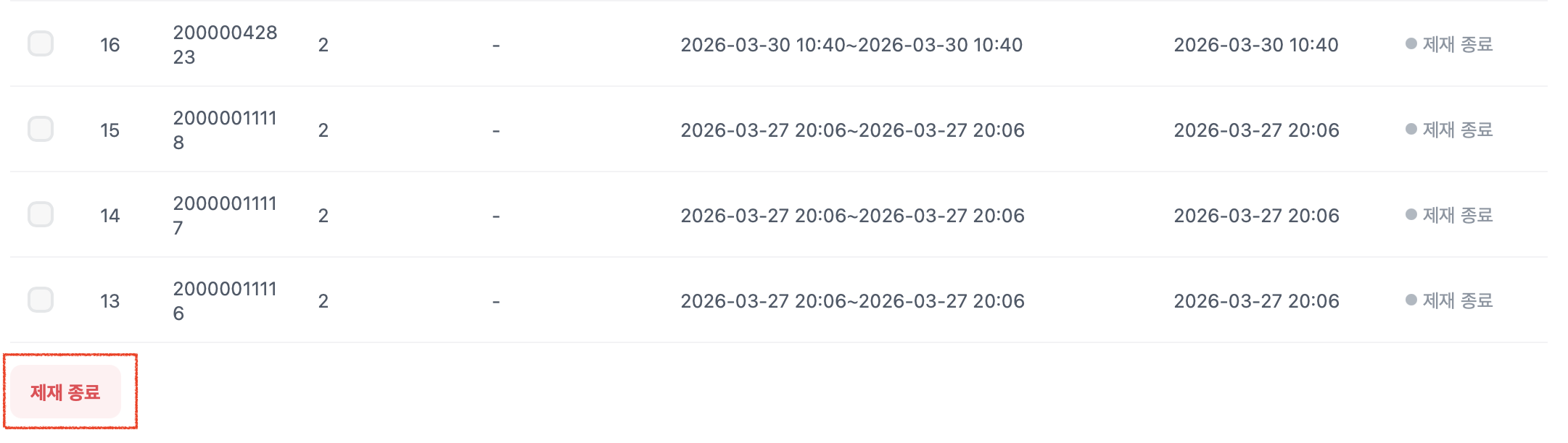 제재 종료 버튼을 클릭하면 선택한 모든 유저의 제재를 즉시 종료할 수 있습니다. 제재를 종료하면 해당 유저는 즉시 채팅을 이용할 수 있습니다.