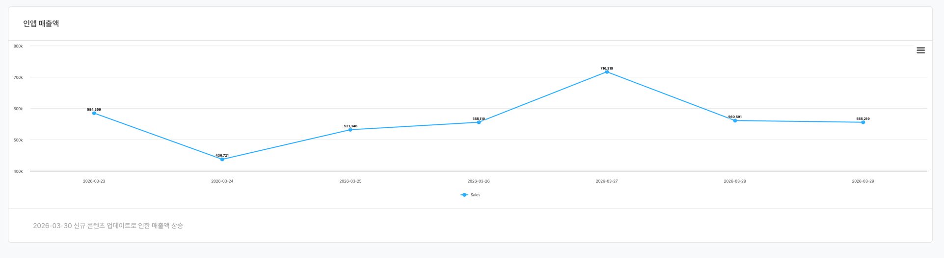 - DAU, ARPU, 전환율 등 주요 KPI를 한 화면에 모아두면 매일 아침 애널리틱스에 접속하는 순간 핵심 현황을 바로 파악할 수 있습니다.