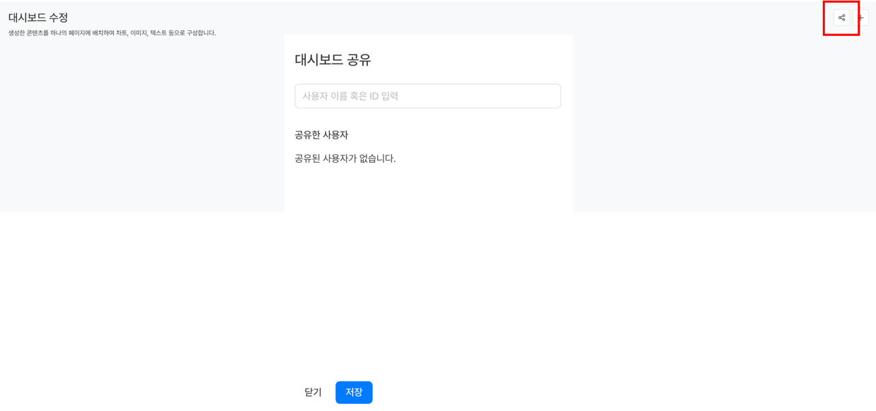 생성된 대시보드 공유는 대시보드 수정 페이지에서 설정할 수 있습니다.