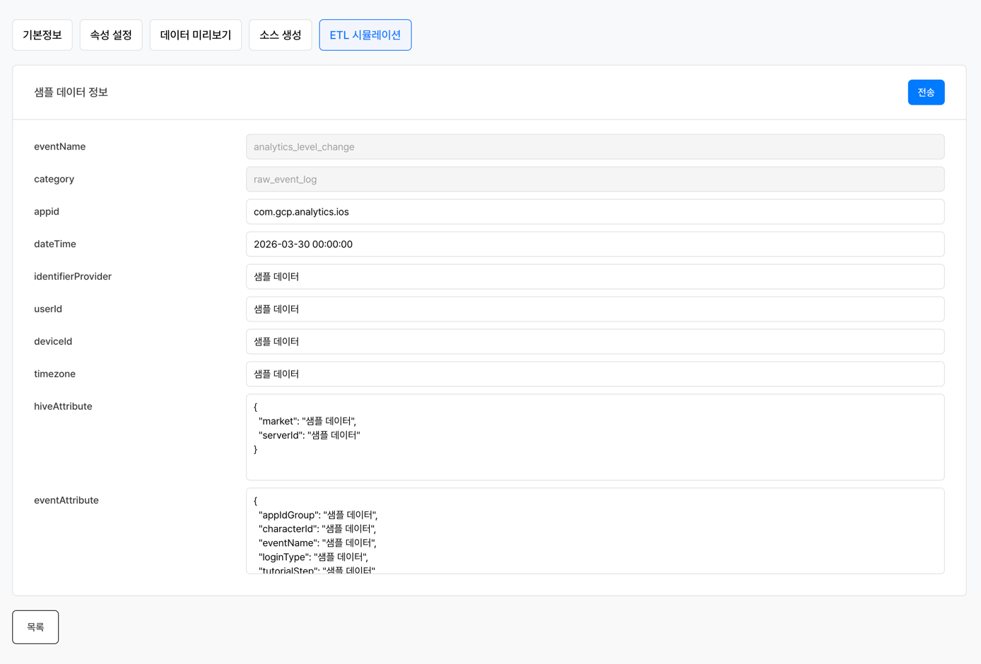 이벤트 속성·데이터 미리보기·ETL 시뮬레이션 등 세부 설정은 전체 기능을 참고하세요.