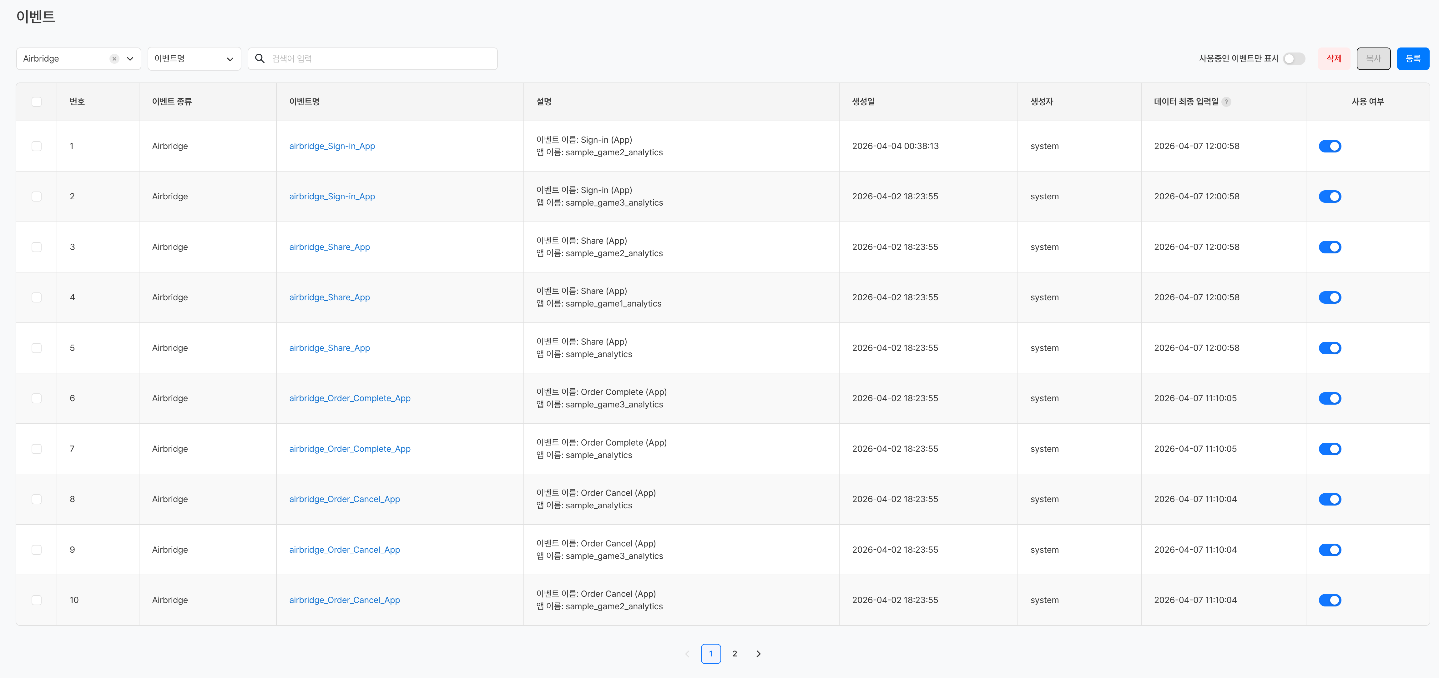 - 데이터 > 이벤트: MMP 이벤트 목록 조회 및 관리