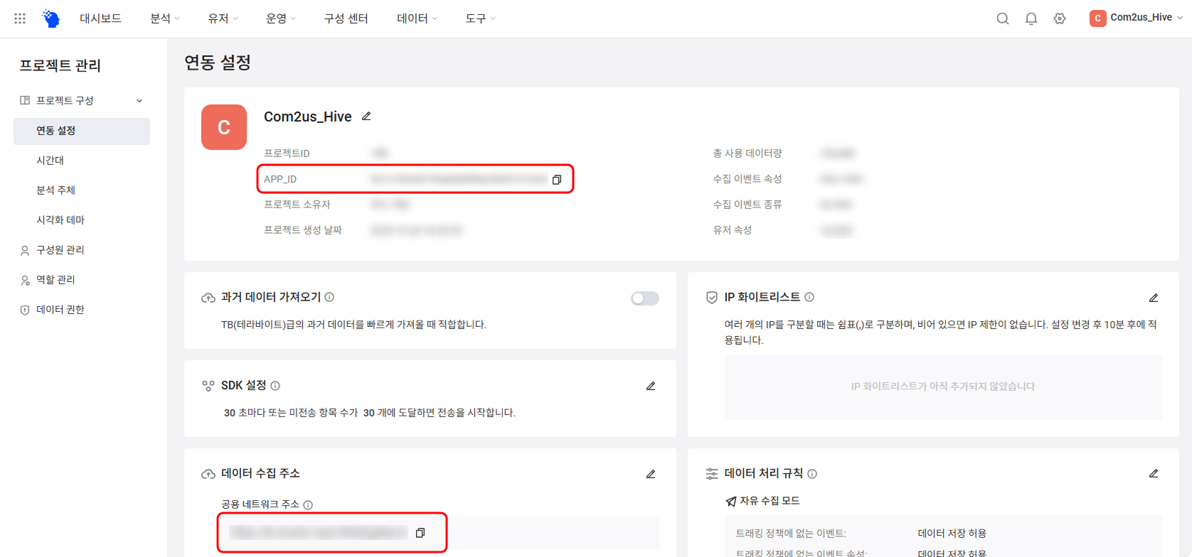 - APP_ID와 ‘데이터 수집 주소 > 공용 네트워크 주소’ 를 복사해 주세요.
