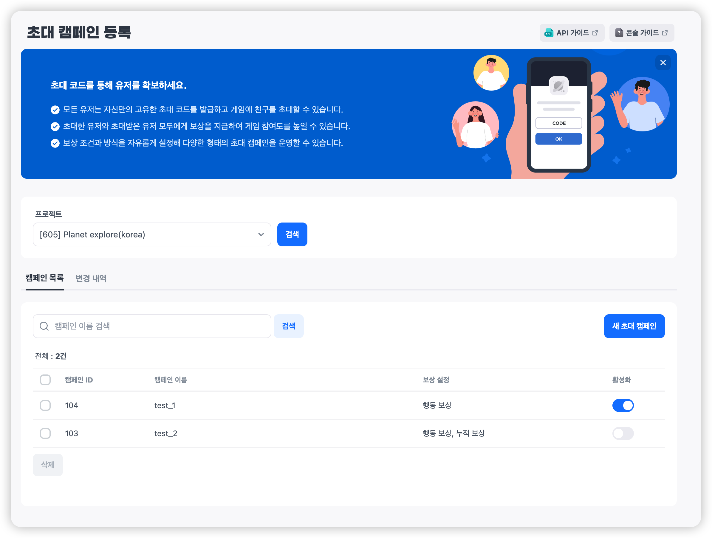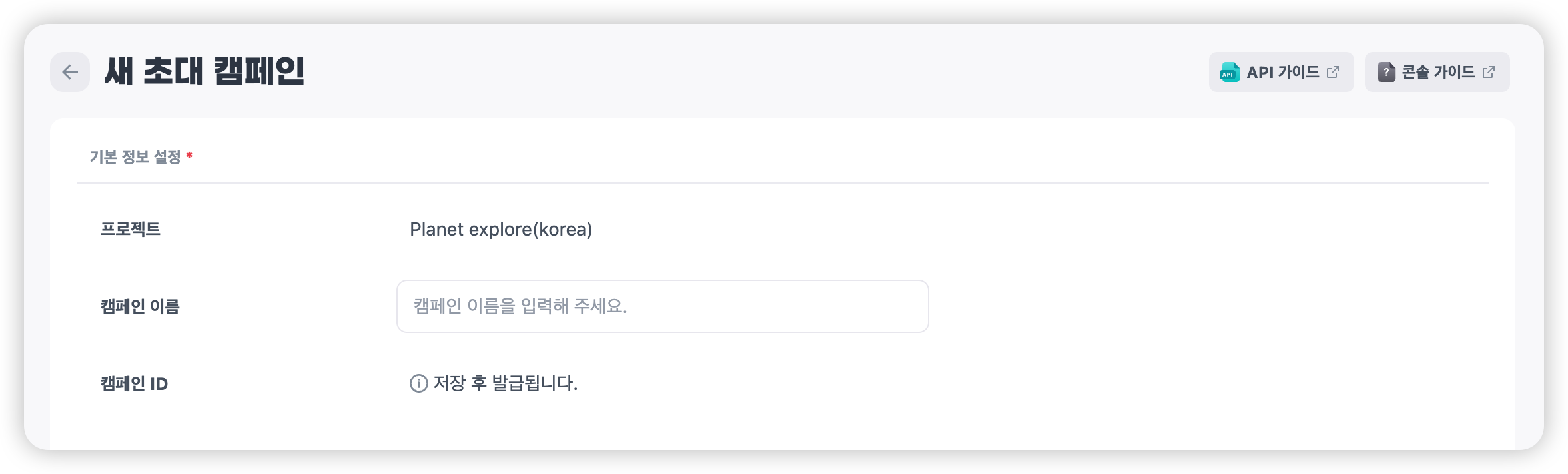 - 콘솔에서 초대 캠페인을 등록합니다.