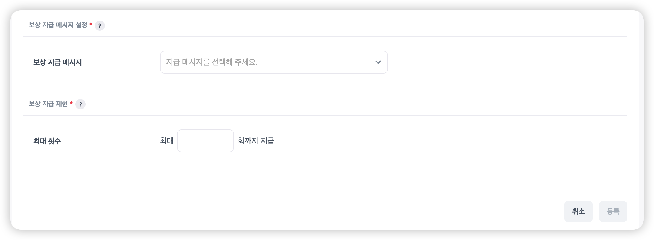 두 보상 유형 모두 동일한 조건을 설정할 수 있으며, 각 조건별로 보상 지급 여부를 선택할 수 있습니다.