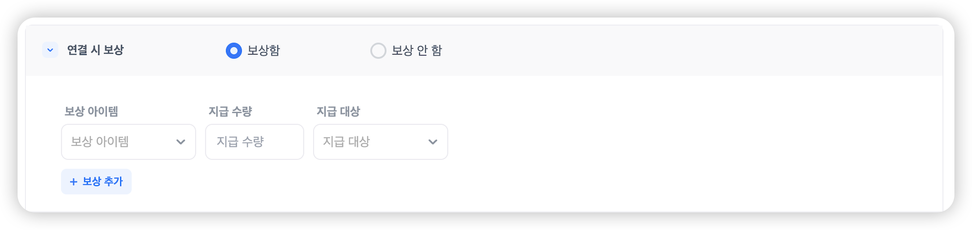 각 보상 항목에서 ‘보상함’을 선택하면 상세 설정을 입력할 수 있습니다.
