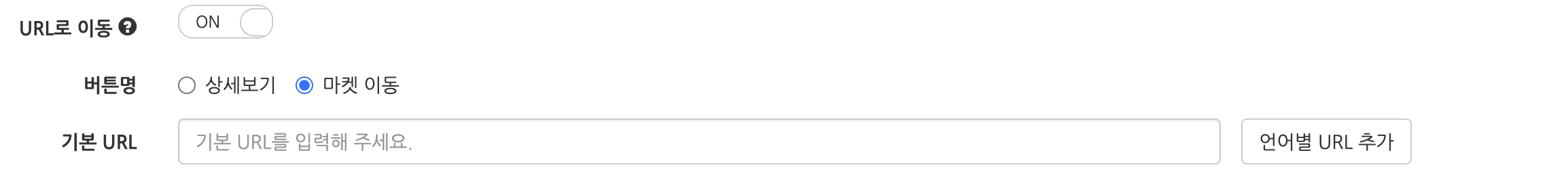 - URL로 이동(상세보기): 웹 브라우저를 통해 입력한 URL로 연결됩니다. 마켓이나 카페 URL을 입력할 수 있습니다.